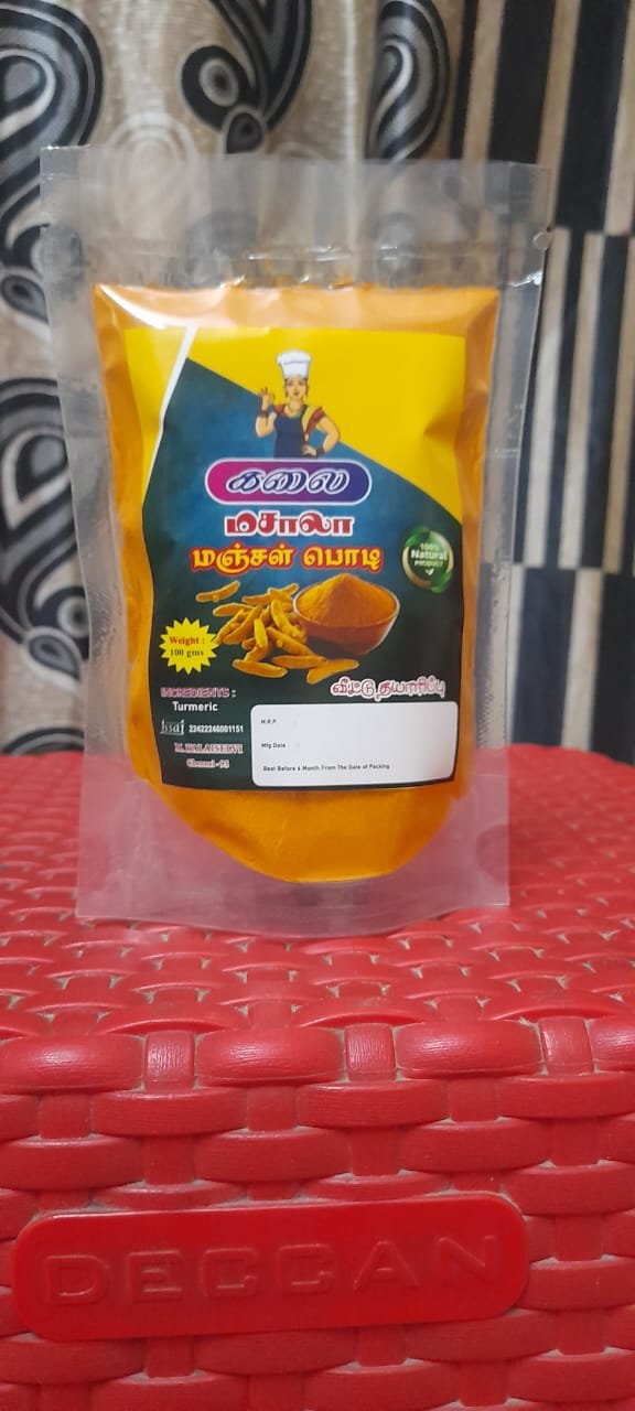 Freshly prepared turmeric (manjal) powder made from high-quality turmeric roots.